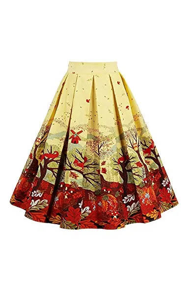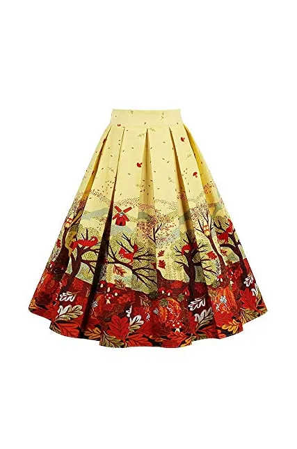 - Features:vintage printed patterns, a-line, high waist, with pockets
