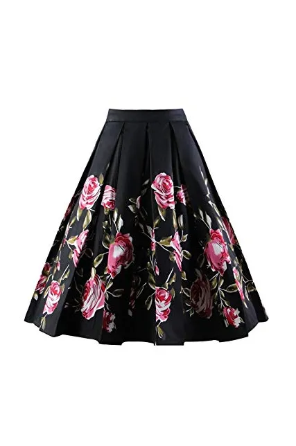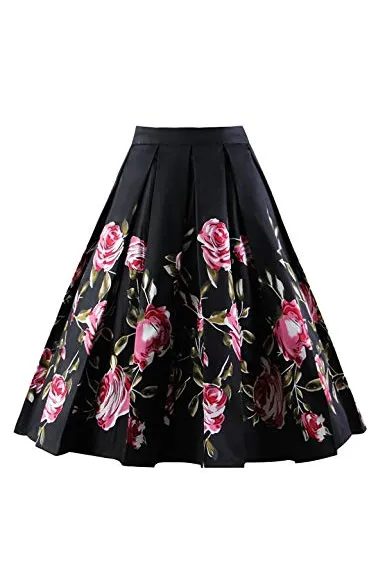 - Features:vintage printed patterns, a-line, high waist, with pockets