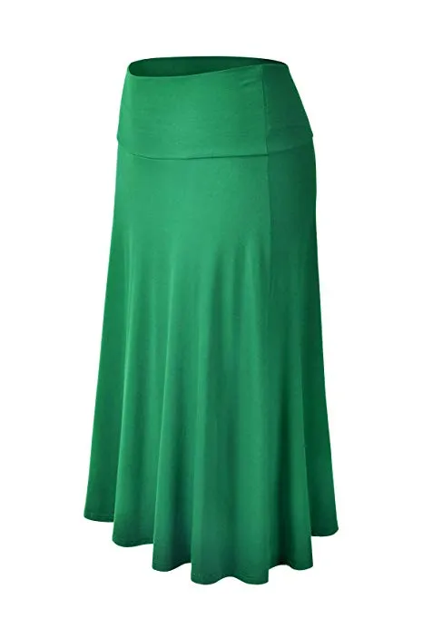- Lightweight Classic Solid Flared Loos Fit Midi Skirt with Banded Elastic Waist