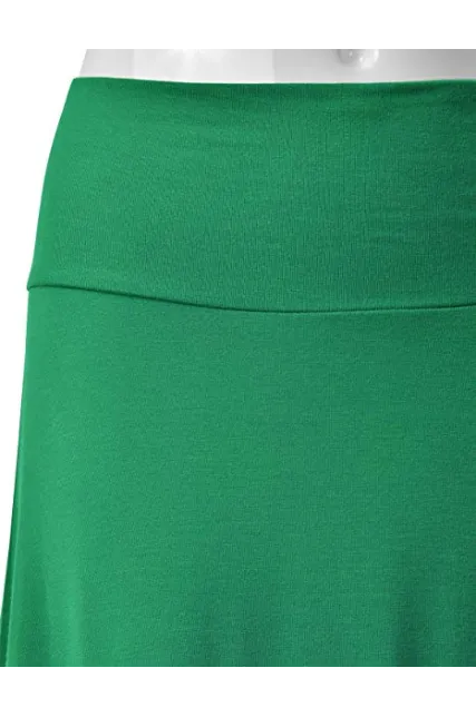 - Lightweight Classic Solid Flared Loos Fit Midi Skirt with Banded Elastic Waist