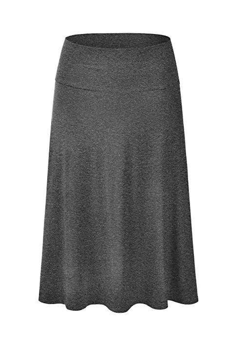 - Lightweight Classic Solid Flared Loos Fit Midi Skirt with Banded Elastic Waist