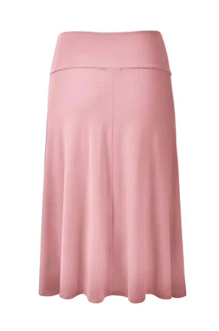 - Lightweight Classic Solid Flared Loos Fit Midi Skirt with Banded Elastic Waist