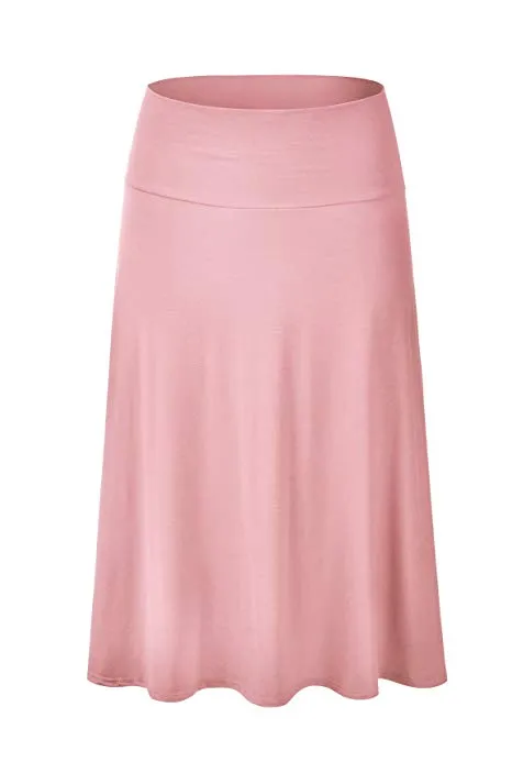 - Lightweight Classic Solid Flared Loos Fit Midi Skirt with Banded Elastic Waist