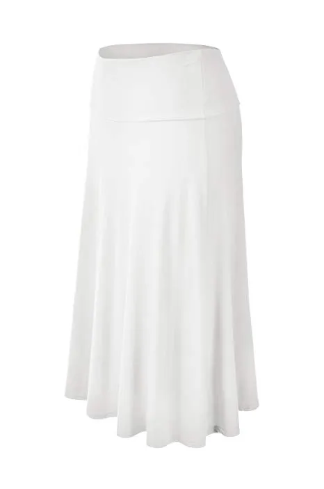 - Lightweight Classic Solid Flared Loos Fit Midi Skirt with Banded Elastic Waist