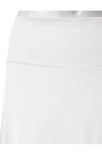 - Lightweight Classic Solid Flared Loos Fit Midi Skirt with Banded Elastic Waist