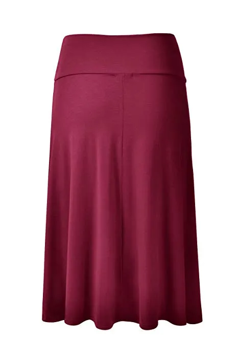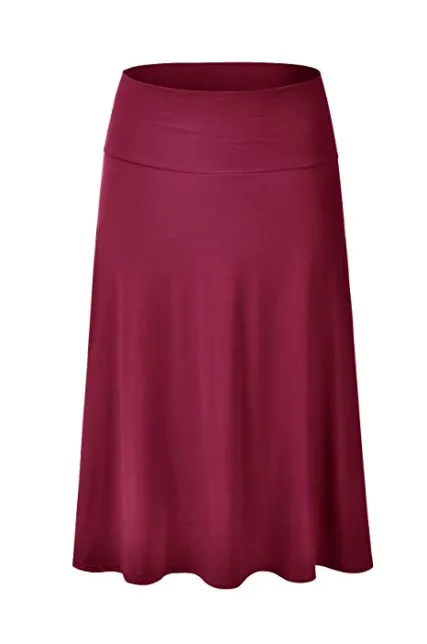 - Lightweight Classic Solid Flared Loos Fit Midi Skirt with Banded Elastic Waist