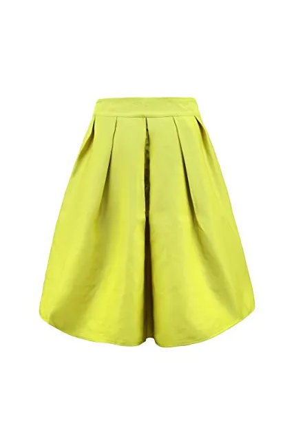 FACE N FACE Women's High Waisted A Line Street Skirt Skater Pleated Full Midi Skirt