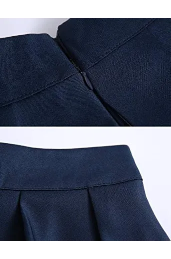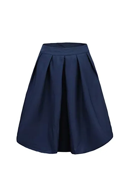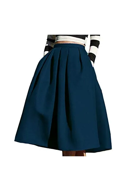 FACE N FACE Women's High Waisted A Line Street Skirt Skater Pleated Full Midi Skirt