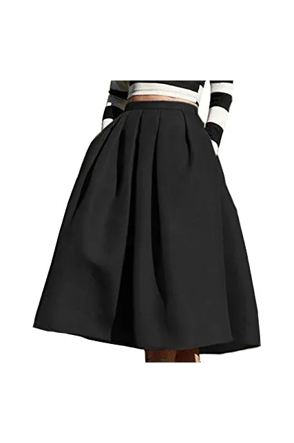 FACE N FACE Women's High Waisted A Line Street Skirt Skater Pleated Full Midi Skirt