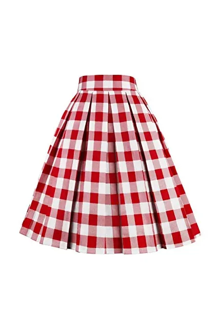 - Features: A-line, vintage style, high waist, zipper, pockets, pleated patterns