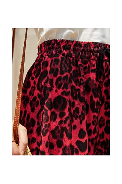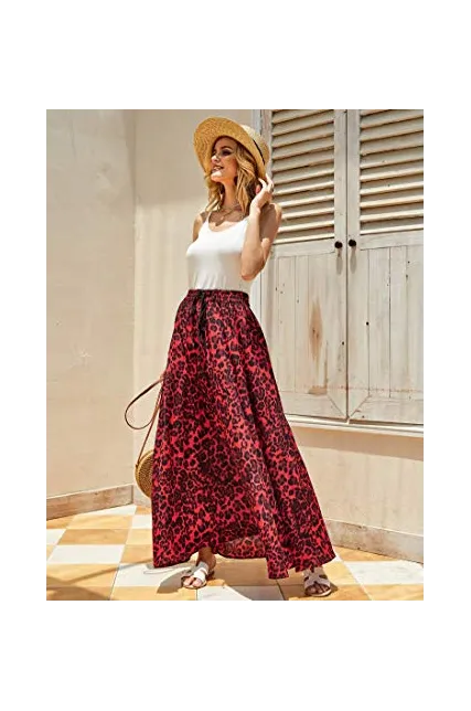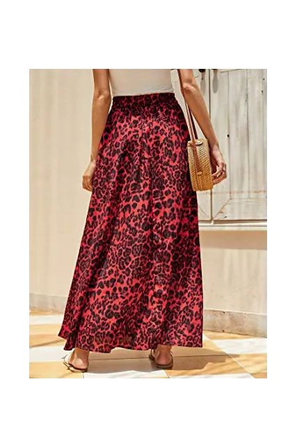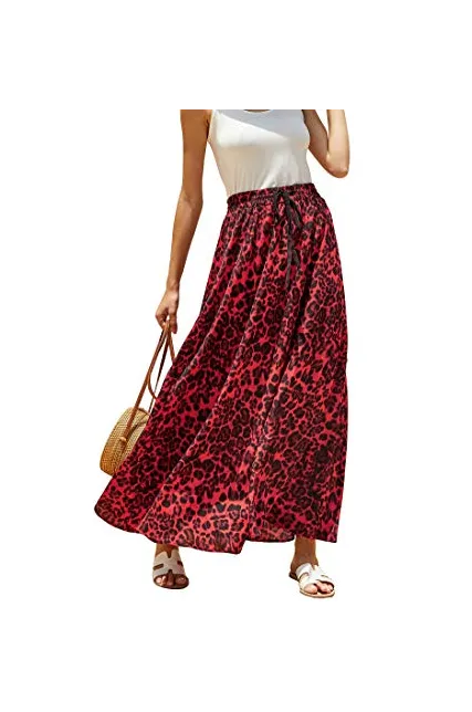 - Women leopard print maxi skirts, Front drawstring waist, High waisted, Floor length, Swing summer beach skirt