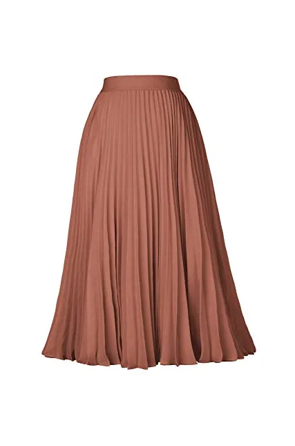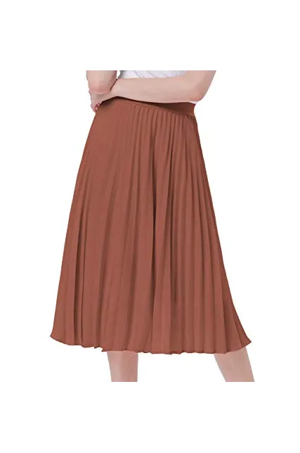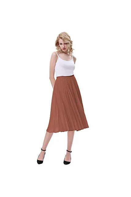 - The midi skirt with lining layer features pleated design, and stretchy waistline for a comfortable fit.