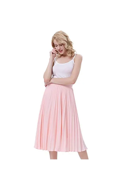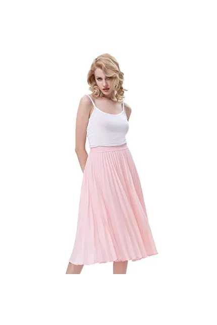 - The midi skirt with lining layer features pleated design, and stretchy waistline for a comfortable fit.