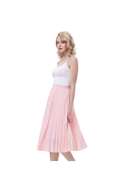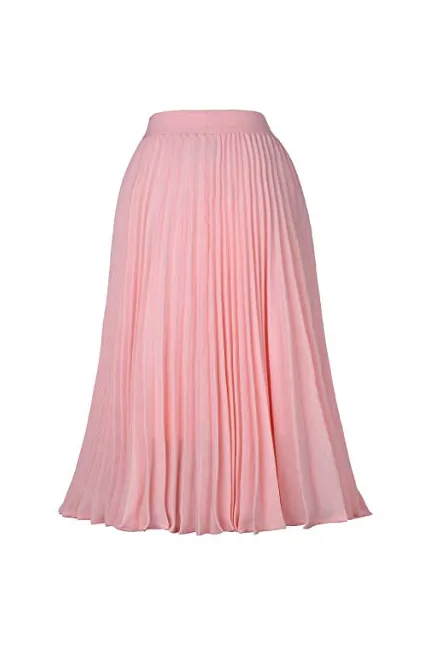 - The midi skirt with lining layer features pleated design, and stretchy waistline for a comfortable fit.