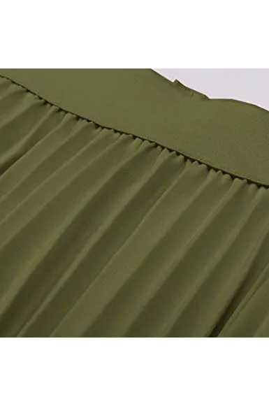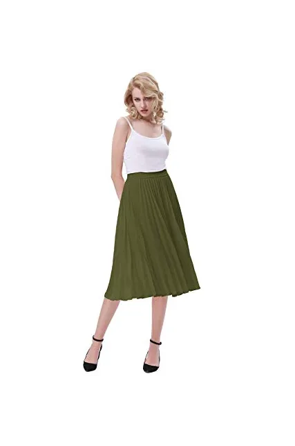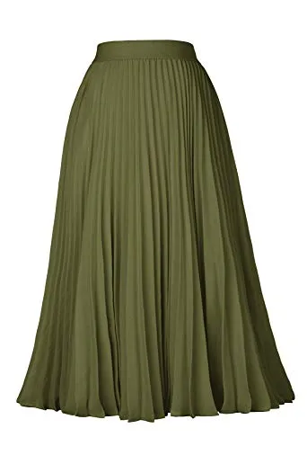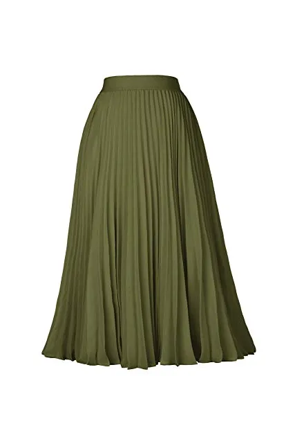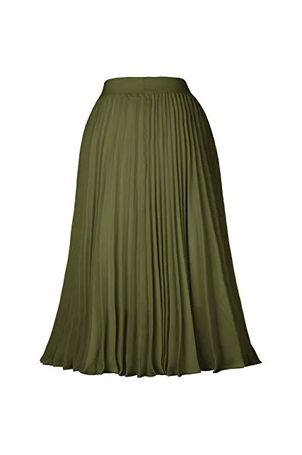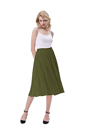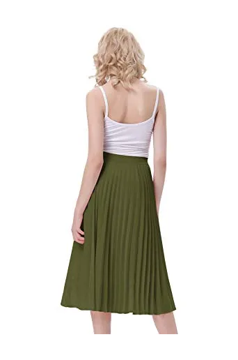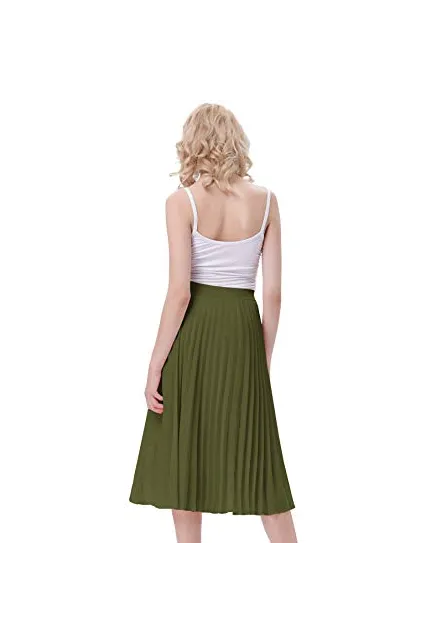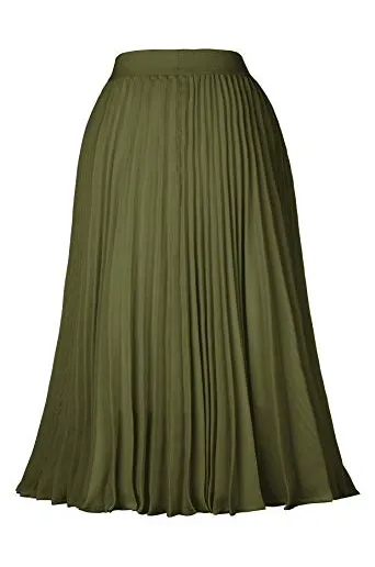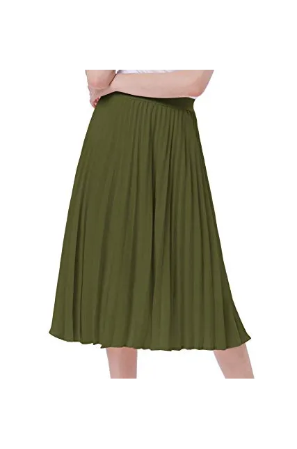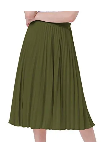 - The midi skirt with lining layer features pleated design, and stretchy waistline for a comfortable fit.