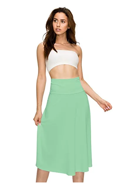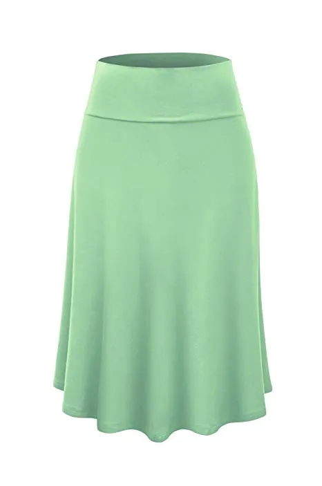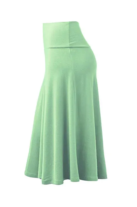 Lock and Love Women's Solid Ombre Lightweight Flare Midi Pull On Closure Skirt S-XXXL Plus Size