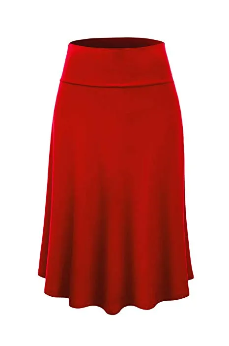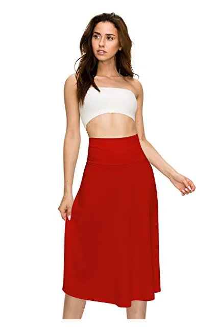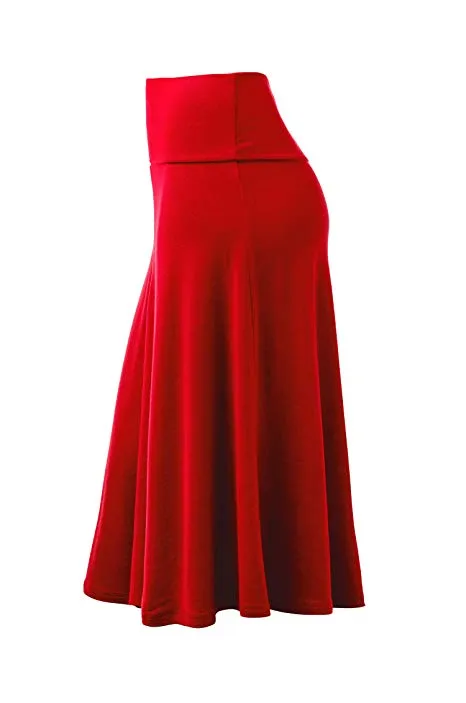 Lock and Love Women's Solid Ombre Lightweight Flare Midi Pull On Closure Skirt S-XXXL Plus Size