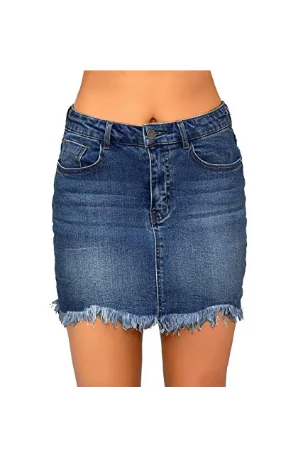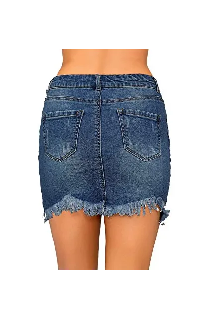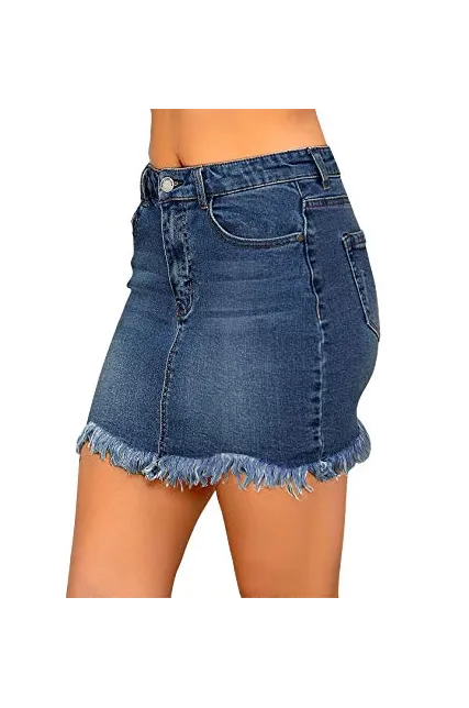 - Basic five pockets and button-and-zipper closure. Short jean skirt features stylish fringed hem for sweet girly vibes.
