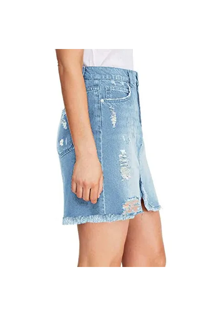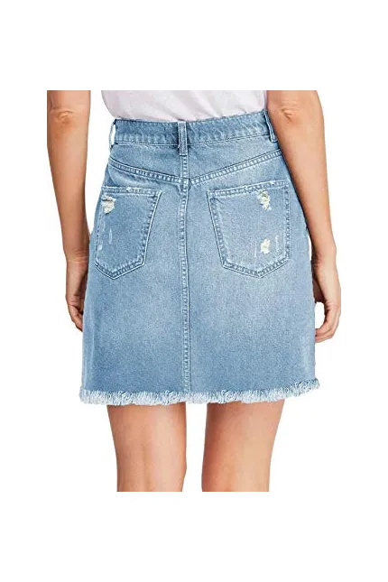- Women Short jean skirt, basic five pockets and button-and-zipper closure. Casual skirts for women, raw-cut, frayed hemline.