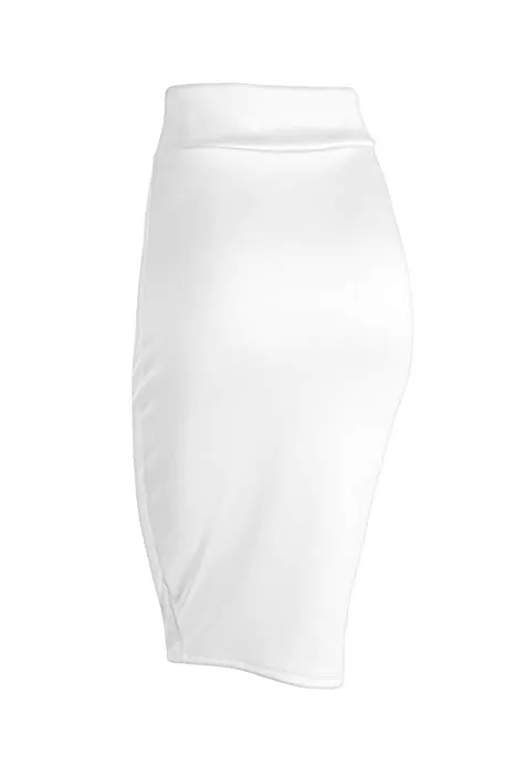 Made By Johnny Women's Elastic Waist Stretch Bodycon Midi Knee Length Pencil Skirt for Office- Made in USA