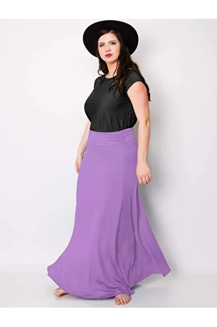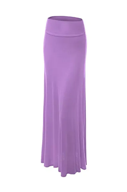 - Basic solid jersey fold over maxi skirt / Unlined