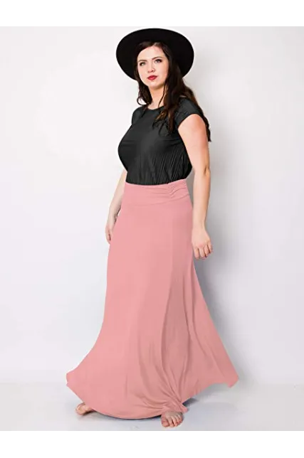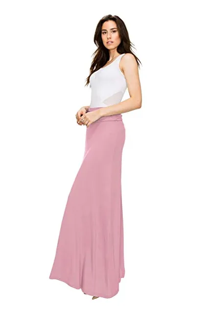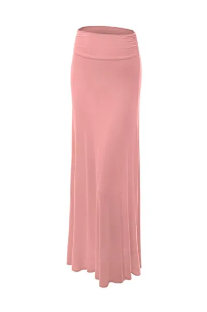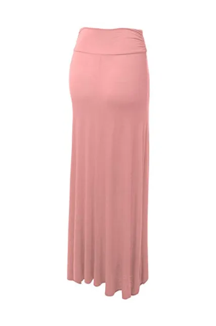 - Basic solid jersey fold over maxi skirt / Unlined
