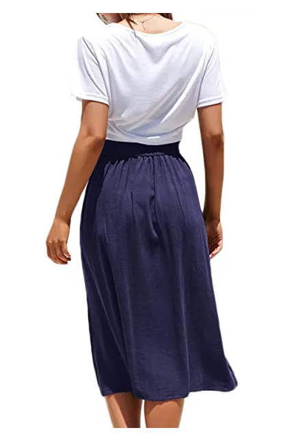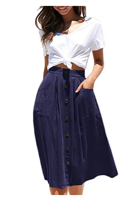 - Features:Casual Flared Midi Skirt with Single Breasted,Two Big Pocket On the Side,Elastic Back High Waisted Style,Designed for Classical Fashion with High Level Comfort Fit