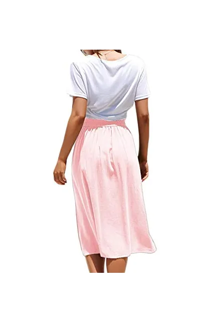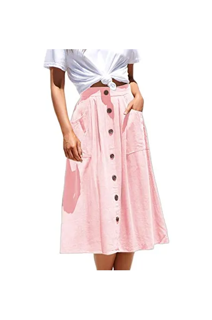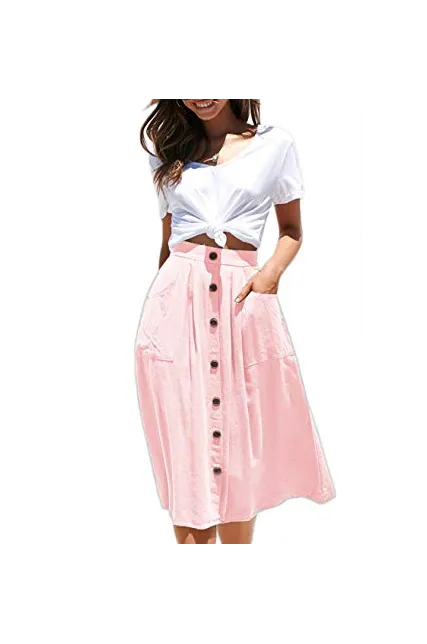 - Features:Casual Flared Midi Skirt with Single Breasted,Two Big Pocket On the Side,Elastic Back High Waisted Style,Designed for Classical Fashion with High Level Comfort Fit