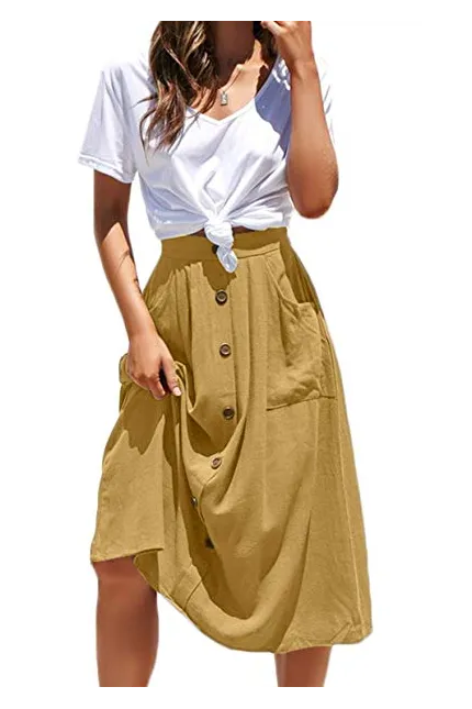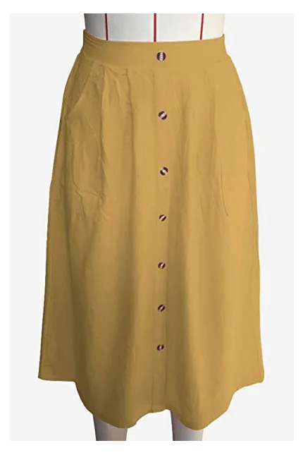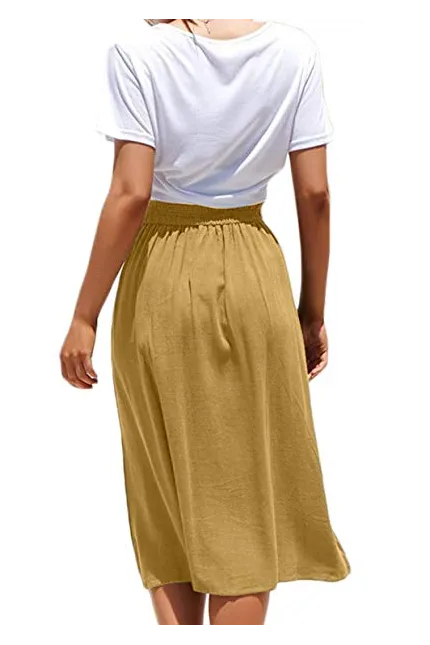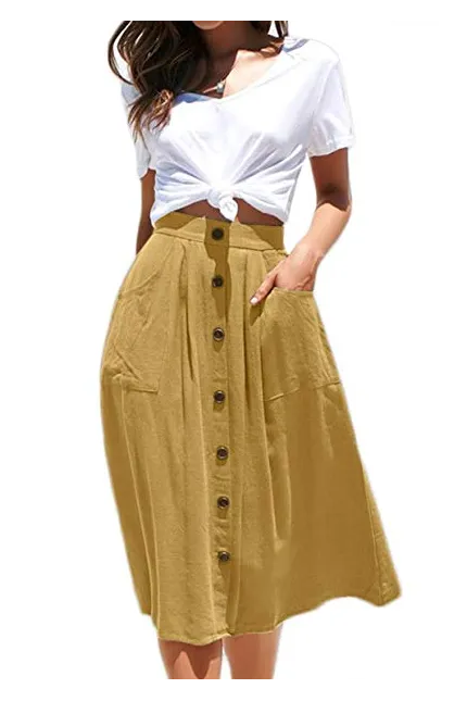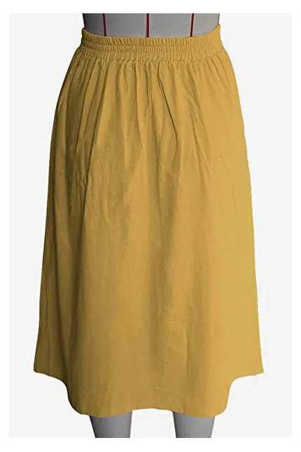- Features:Casual Flared Midi Skirt with Single Breasted,Two Big Pocket On the Side,Elastic Back High Waisted Style,Designed for Classical Fashion with High Level Comfort Fit