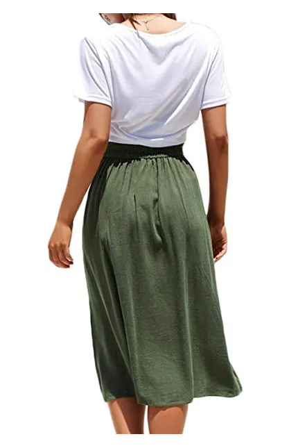 - Features:Casual Flared Midi Skirt with Single Breasted,Two Big Pocket On the Side,Elastic Back High Waisted Style,Designed for Classical Fashion with High Level Comfort Fit