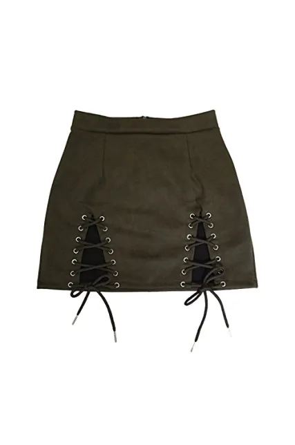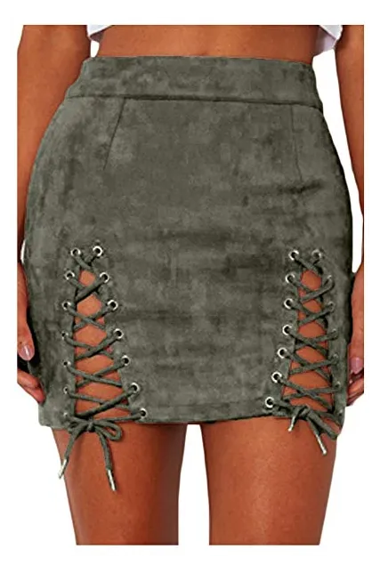 - Double Criss-Cross Lacing Up Split Side,High Waist Bodycon Faux Suede Mini Pencil Skirt