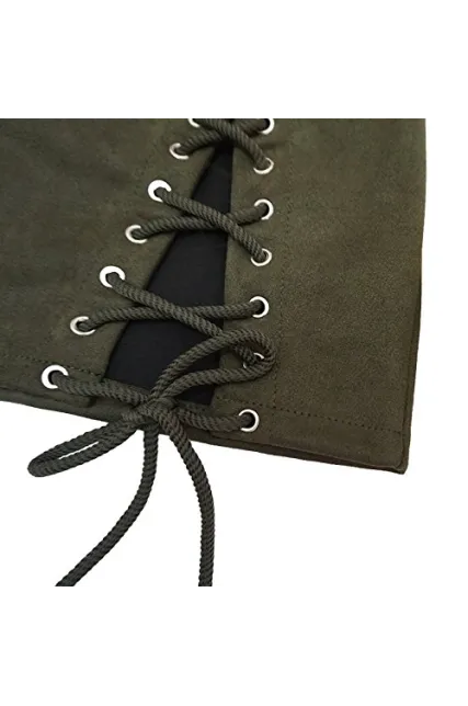 - Double Criss-Cross Lacing Up Split Side,High Waist Bodycon Faux Suede Mini Pencil Skirt