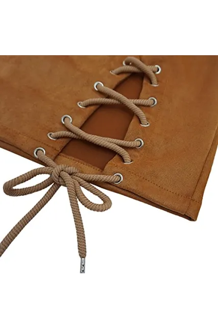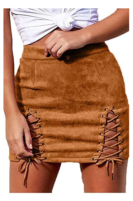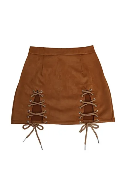 - Double Criss-Cross Lacing Up Split Side,High Waist Bodycon Faux Suede Mini Pencil Skirt