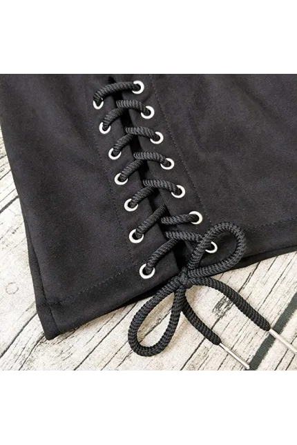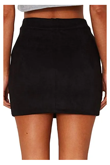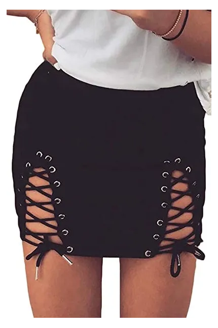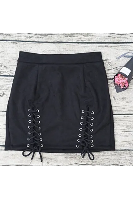- Double Criss-Cross Lacing Up Split Side,High Waist Bodycon Faux Suede Mini Pencil Skirt