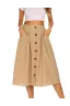 Naggoo Womens Casual Front Button A-Line Skirts High Waisted Midi Skirt with Pockets