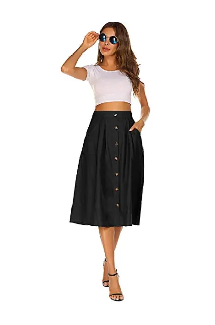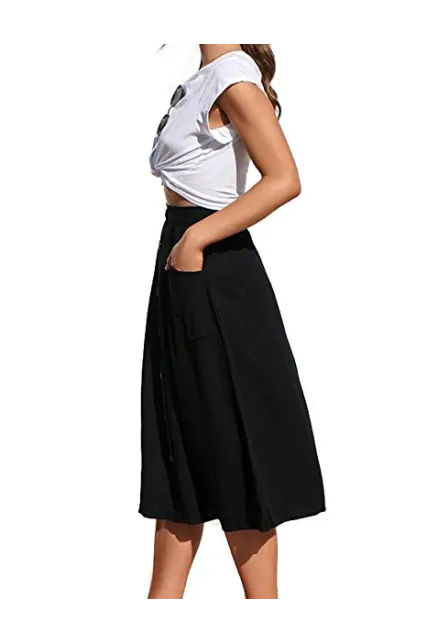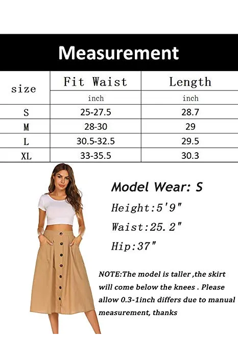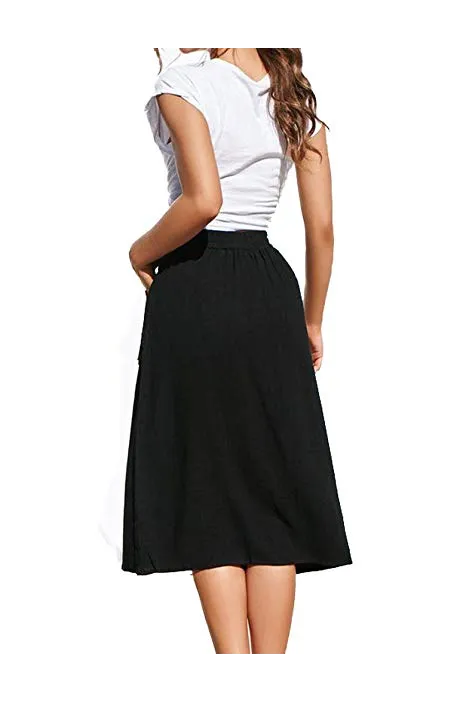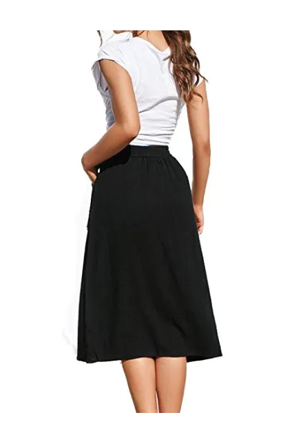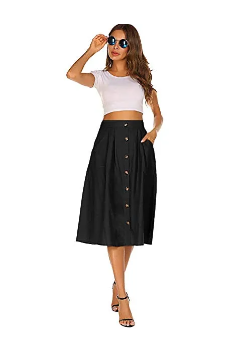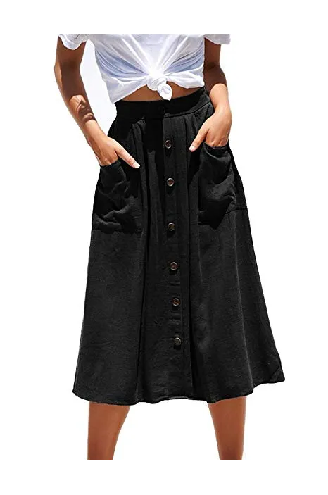 Naggoo Womens Casual Front Button A-Line Skirts High Waisted Midi Skirt with Pockets