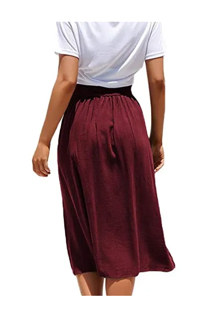 Naggoo Womens Casual Front Button A-Line Skirts High Waisted Midi Skirt with Pockets