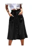 Naggoo Womens Casual Front Button A-Line Skirts High Waisted Midi Skirt with Pockets