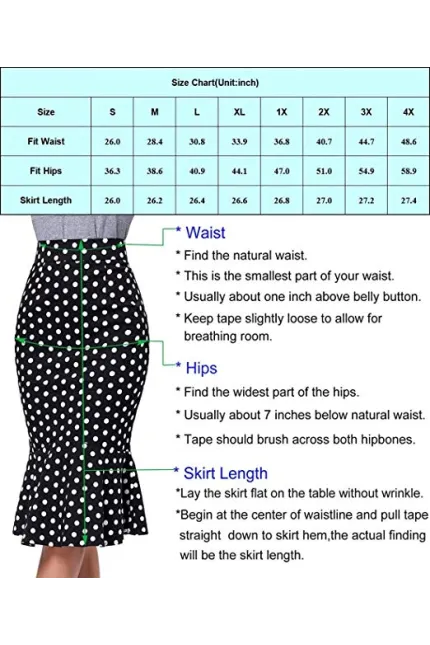 - SIZE SELECTING: Please refer to our size chart picture carefully (Not the Amazon Size Chart), please feel free to contact us if you have any problems about the skirt