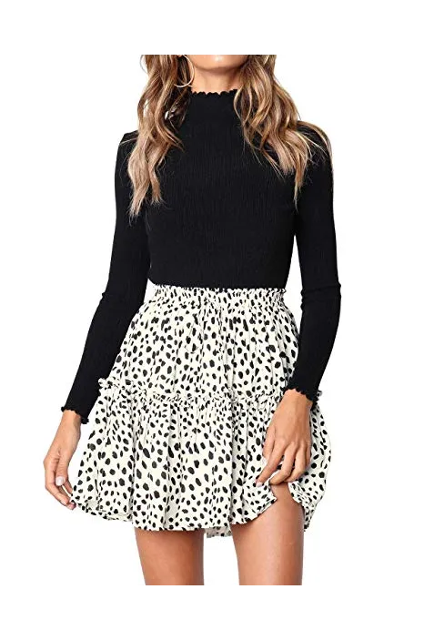 Salamola Women's Leopard Asymmetrical Ruffles High Waist Printed Cute Casual Mini Skirt
