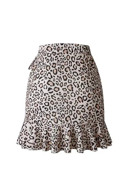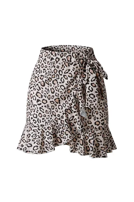 Salamola Women's Leopard Asymmetrical Ruffles High Waist Printed Cute Casual Mini Skirt