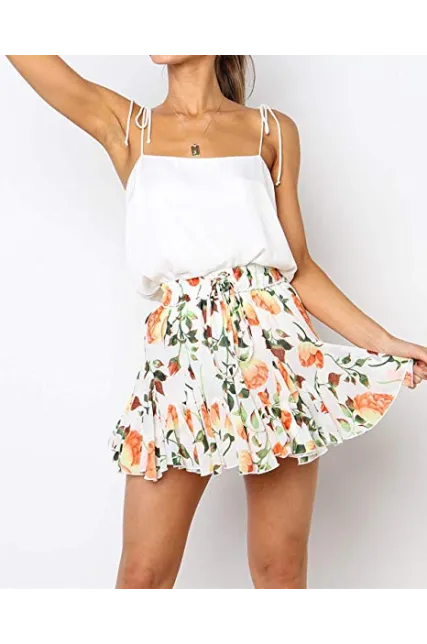 - ❀Irregular hem / Mini Skirt / Decorative Tie / High Waist / Ruffles / Fold /Elastic Waist