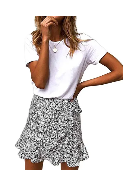 Salamola Women's Leopard Asymmetrical Ruffles High Waist Printed Cute Casual Mini Skirt