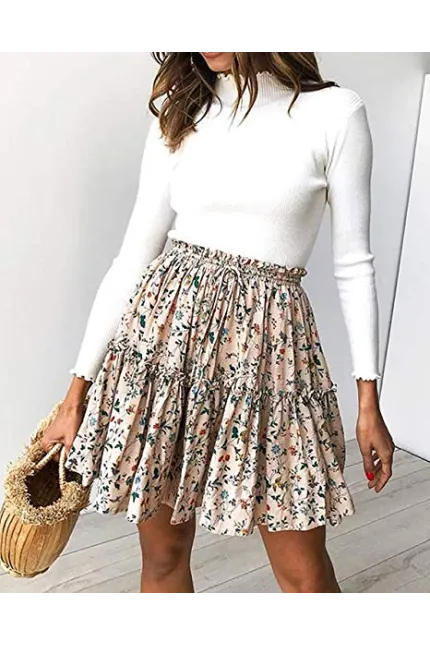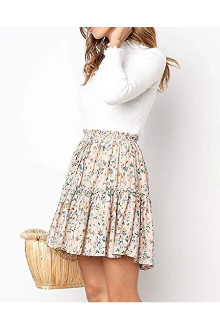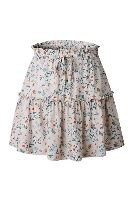 - ❀Irregular hem / Mini Skirt / Decorative Tie / High Waist / Ruffles / Fold /Elastic Waist