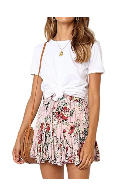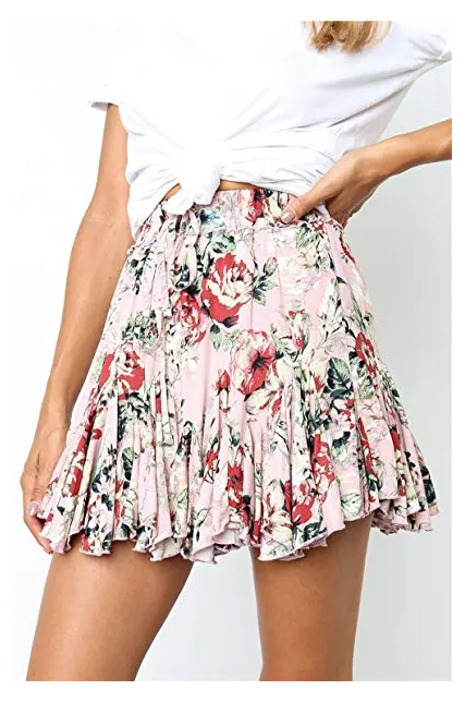 - ❀Irregular hem / Mini Skirt / Decorative Tie / High Waist / Ruffles / Fold /Elastic Waist
