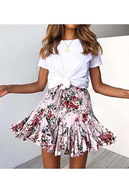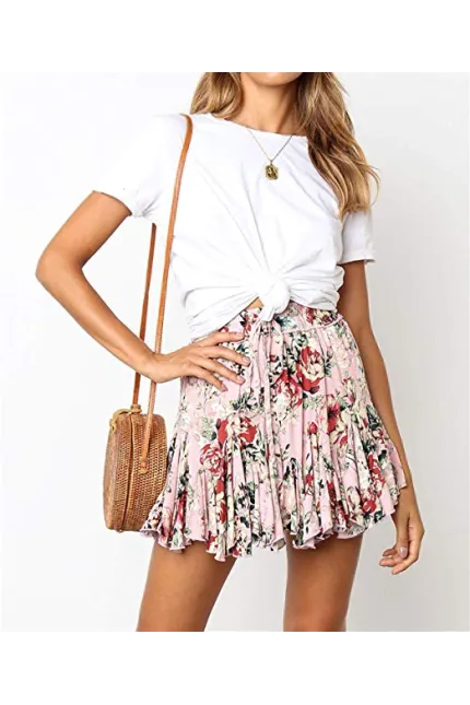 - ❀Irregular hem / Mini Skirt / Decorative Tie / High Waist / Ruffles / Fold /Elastic Waist