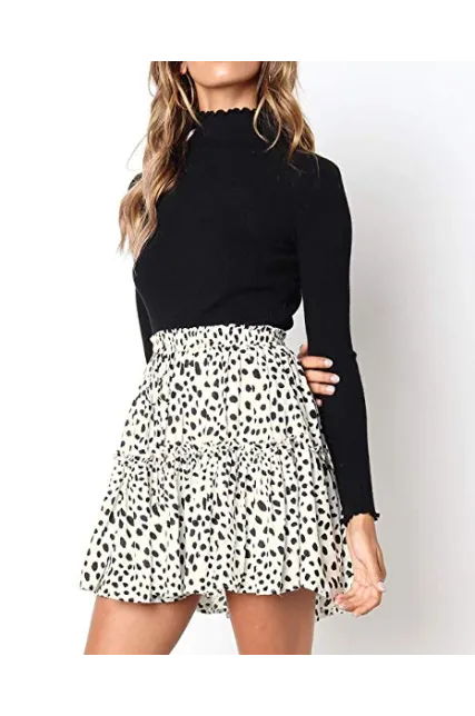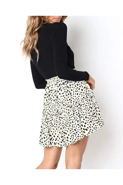 Salamola Women's Leopard Asymmetrical Ruffles High Waist Printed Cute Casual Mini Skirt
