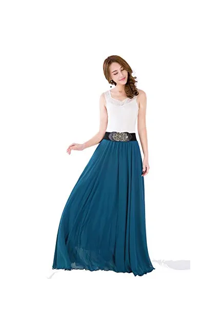 Sinreefsy Summer Chiffon High Waist Pleated Big Hem Floor/Ankle Length Beach Maxi Skirt for Women Wedding Party