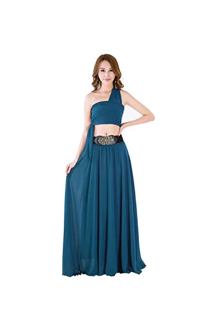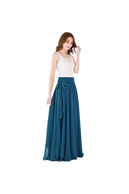 Sinreefsy Summer Chiffon High Waist Pleated Big Hem Floor/Ankle Length Beach Maxi Skirt for Women Wedding Party