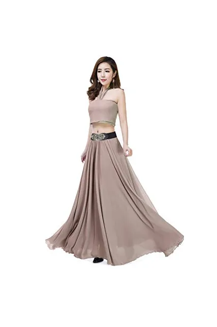 Sinreefsy Summer Chiffon High Waist Pleated Big Hem Floor/Ankle Length Beach Maxi Skirt for Women Wedding Party
